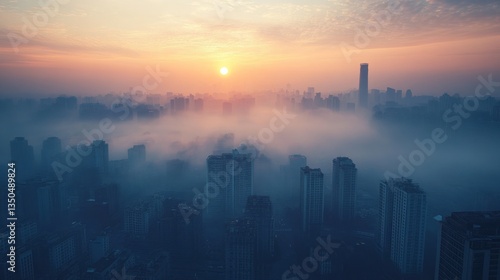 © Turah, Fototapeta premium Misty Sunrise over City Skyline