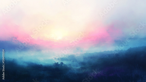 © ADIFERI, Fototapeta premium Misty Sunrise Over Hills