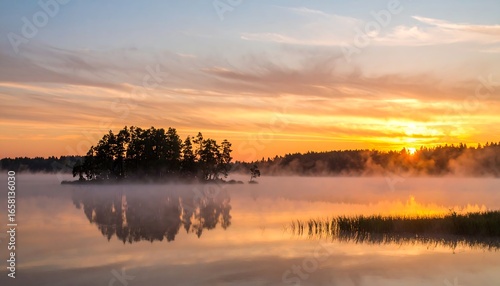 Fototapeta premium Misty Sunrise over Lake