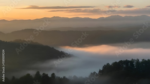 Fototapeta premium Misty Sunrise Over Mountain Ranges