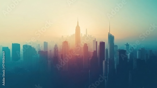 Obraz premium Misty Sunrise over NYC Skyline