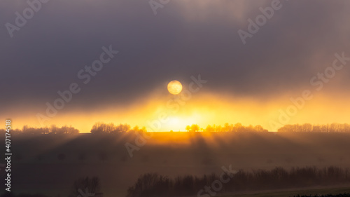 © S.T.A.R.S, Fototapeta premium misty sunset meadow