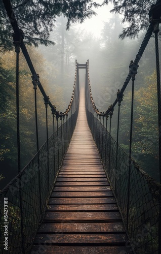 © Udin, Obraz premium Misty suspension bridge through a forest (2)