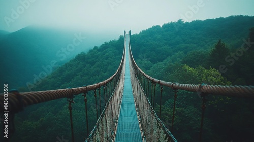 © aulia, Obraz premium Misty suspension bridge through lush forest