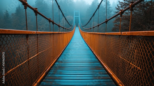 Obraz premium Misty suspension bridge, vivid colors
