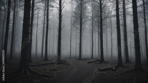 Obraz premium Misty Twilight Enchanted Forest Landscape