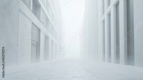 © Marietta, Obraz premium Misty urban landscape with tall buildings at dawn