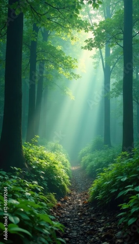 Obraz premium Misty veil shrouding the forest floor in mystery, greenery, plants