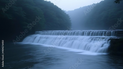 Fototapeta premium Misty Waterfall Cascades Over Steps