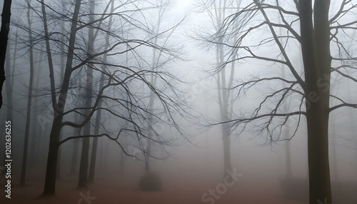 Obraz premium Misty Winter Forest Scene Bare Trees Foggy cold calm grey blue dark
