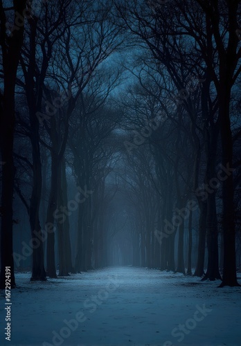 © Ida, Obraz premium Misty winter path through dark trees