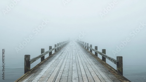 Obraz premium Misty Wooden Dock Leading to the Horizon