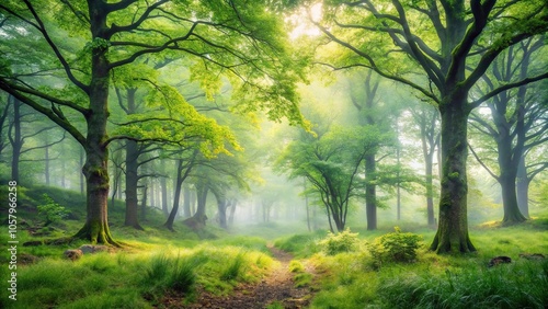 Obraz premium Misty woodland landscape ideal for wallpaper or background usage