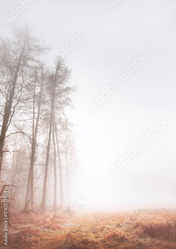 © Rawpixel.com, Obraz premium Misty woods background, grass field border
