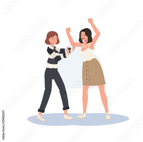 Naklejka premium Misunderstanding, conflict, disagreement concept. Angry People shouting and fight. Flat vector cartoon illustration