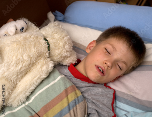 © alephnull, Obraz premium Mit dem Teddy schlafen