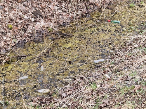 Obraz premium Mit Müll verschmutzter Straßengraben 1