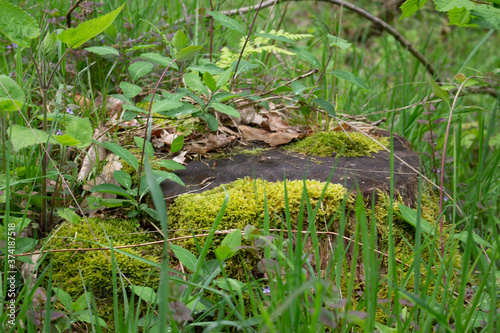 Obraz premium Mit Moos überwucherter Baumstumpf