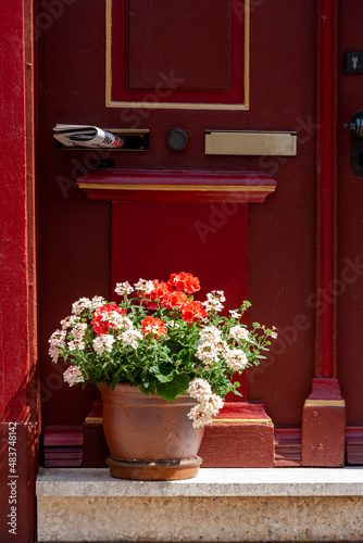 © Heiko Köhrer-Wagner, Fototapeta premium Mit Pflanztopf dekorierte Haustür