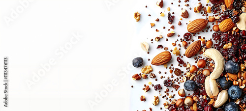 © MDShah, Fototapeta premium Mix of nuts and dry fruits on white background, Generative AI technology