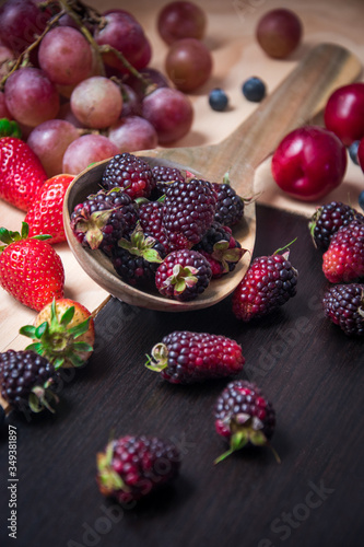 Fototapeta premium mixed berries in a wooden bowl