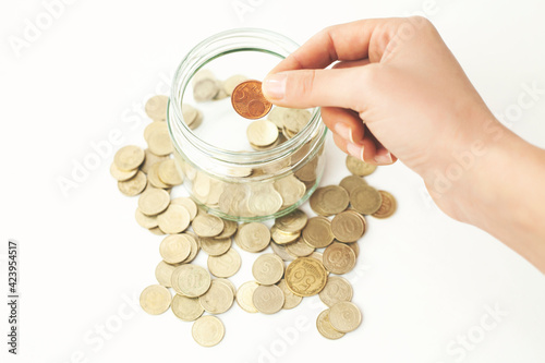 © busra, Fototapeta premium Mixed coin stacks on a white background