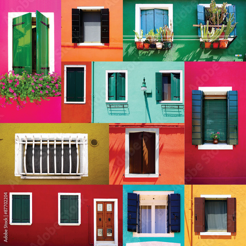 Naklejka premium Mixed colorful Windows wall and Doors collection