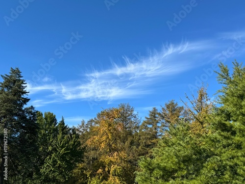 © OLENA LIALINA, Fototapeta premium Mixed forest coniferous and deciduous trees.