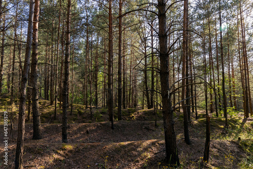 © rsooll, Fototapeta premium mixed forest with large and old trees before sunset