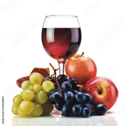 © Nawn, Fototapeta premium Mixed Fruit Wine Glass Grape Apple Coconut White background