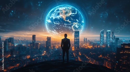 © Nattapat, Fototapeta premium Mixed media of businessman and abstract Earth