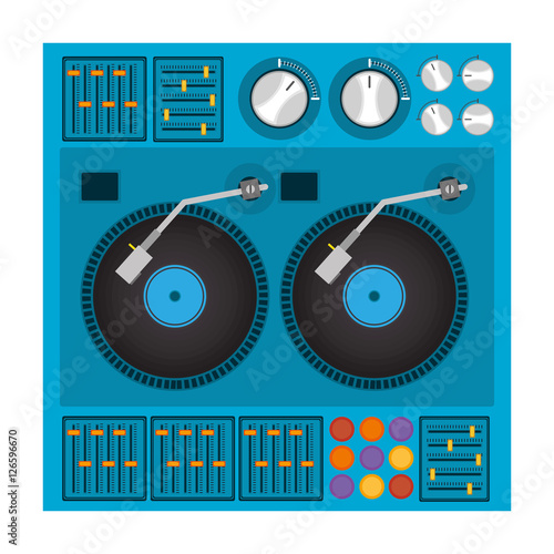 © Grgroup, Obraz premium mixer turntable music device icon over white background. disc jockey design. vector illustration