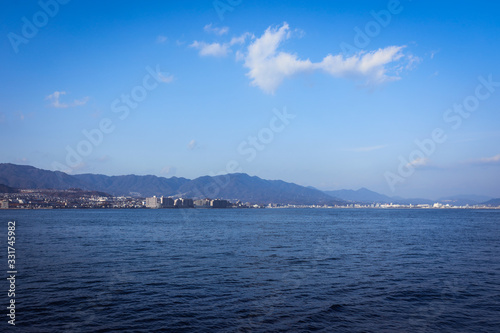 © Dave, Naklejka premium Miyajima, Japan - January 02, 2020: Ferry Boat to Itsukushima Shrine