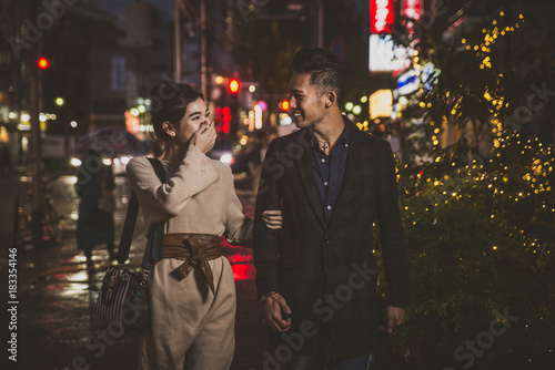 Obraz premium Młoda japońska para spędza razem czas w Tokio