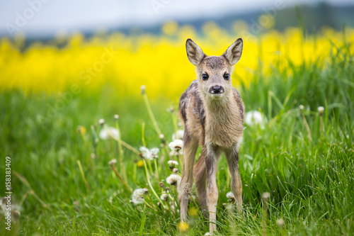 © Lubos Chlubny, Fototapeta premium Młode dzikie sarny w trawie, Capreolus capreolus. Nowonarodzona sarna, dziko wiosenna przyroda.
