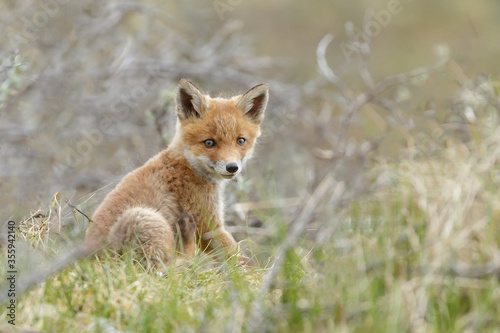 © Menno Schaefer, Fototapeta premium Młode lisa rudego rodzą się wiosną.