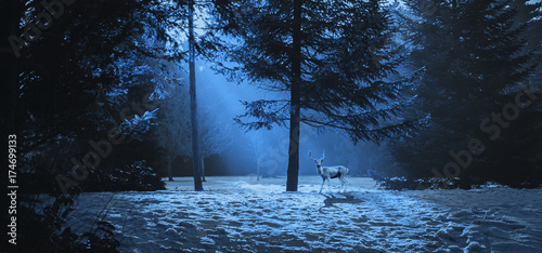 Fototapeta premium Młody jeleń w lesie Sezon Zima