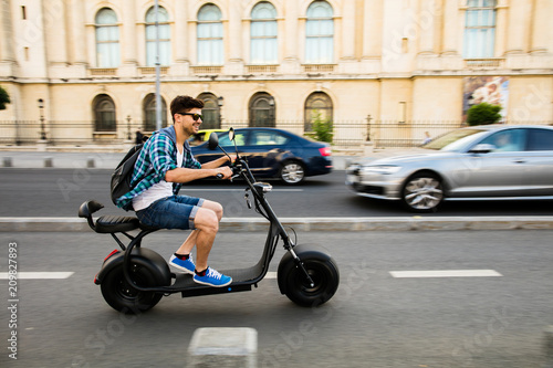 © All king of people, Fototapeta premium młody mężczyzna jedzie pojazdem elektrycznym