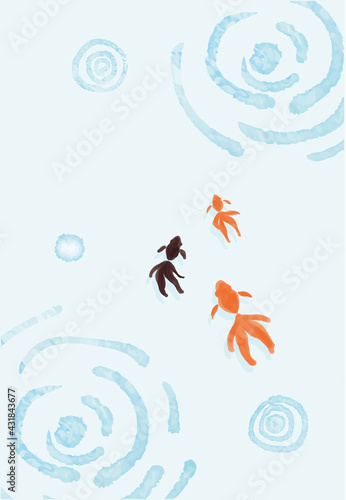 © HuA, Obraz premium 金魚と波紋の暑中見舞いハガキ 印刷用3mm塗り足し ベクター