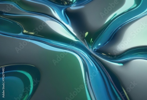 Fototapeta premium 35mm film photography, liquid metal background showing a smooth surface with ripples and subtle gradients of blue and green, high detail, vibrant color palette, cold light tones, blue tones, ai