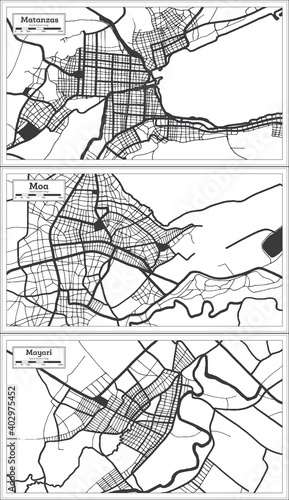 Fototapeta premium Moa, Mayari and Matanzas Cuba City Map Set.