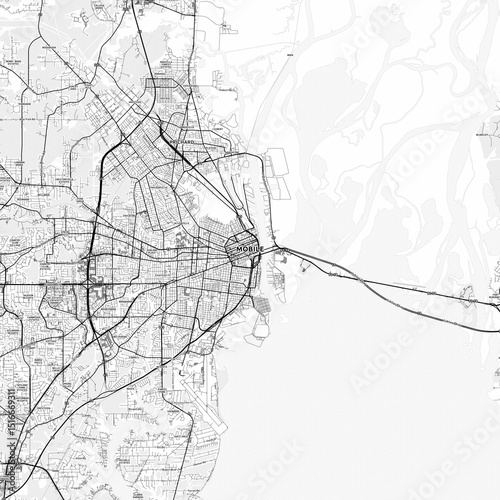 Naklejka premium Mobile Area Map with Labels and Neighborhoods - One color, minimalistic design