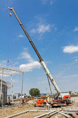 © Roman_23203, Fototapeta premium Mobile crane is preparing for work.