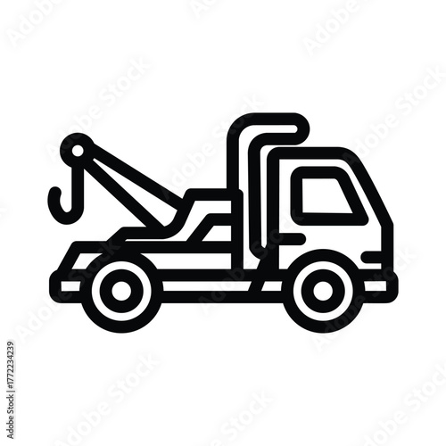 © Dya, Naklejka premium Mobile crane truck line icon, outline illustration of construction vehicle used for lifting, loading, and heavy-duty operations