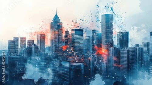 © Kedsara, Obraz premium Mobile fintech solutions, creative app development, startup growth phase, Watercolor style