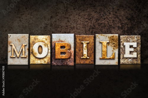 Naklejka premium Mobile Letterpress Concept on Dark Background