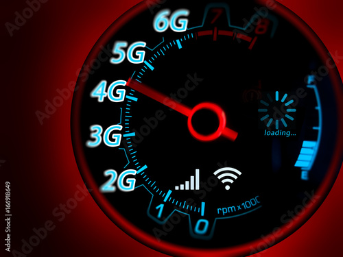 Fototapeta premium Mobile network and internet on speed indicator