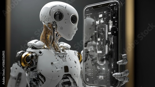 Fototapeta premium Mobile phone with exposed AI brain and robotic framework, concept of next-gen...