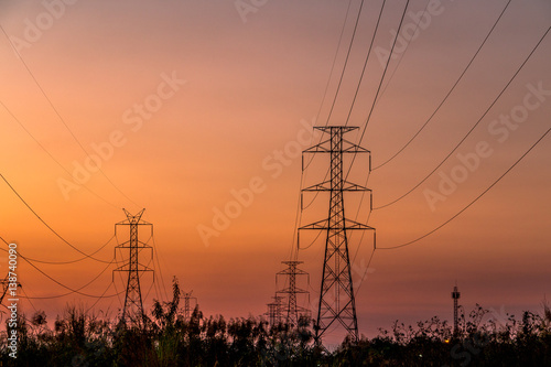 © terdevil23, Fototapeta premium Mobile tower silhouette with twilight evening sky.