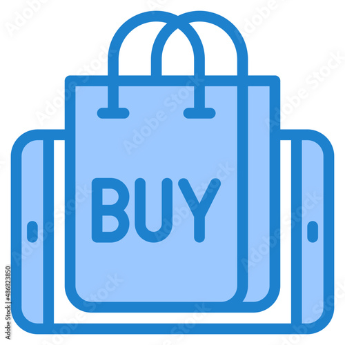 © sripfoto, Fototapeta premium mobilephone blue style icon